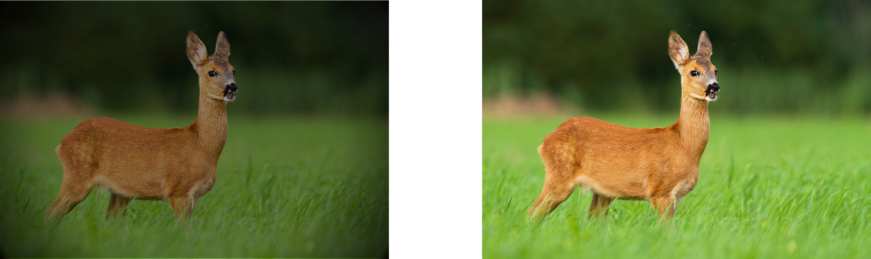 Automatic electronic compensation of F-drop and vignetting.